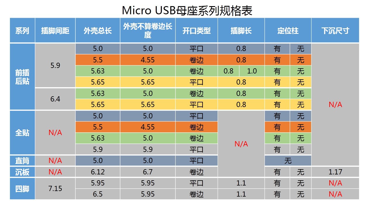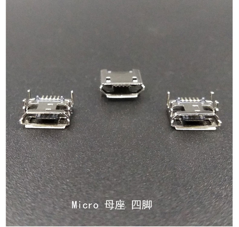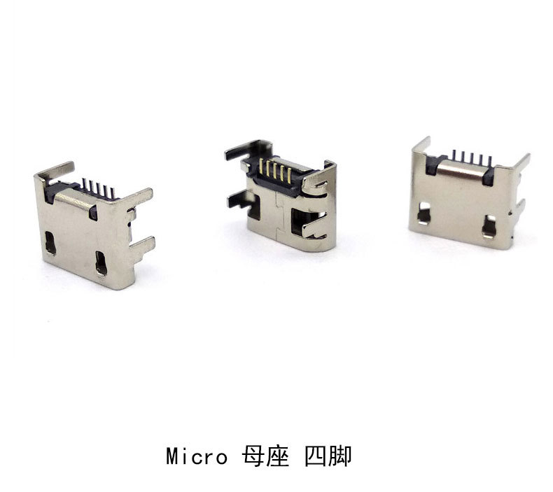 Micro USB母座 四腳型 平口有柱