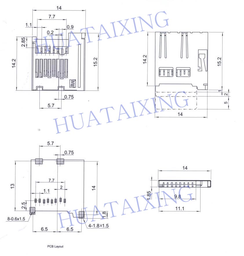 卡座 TF-07: 參考尺寸圖: