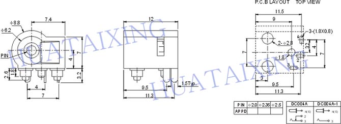 DC-004A展示: 參考尺寸圖: